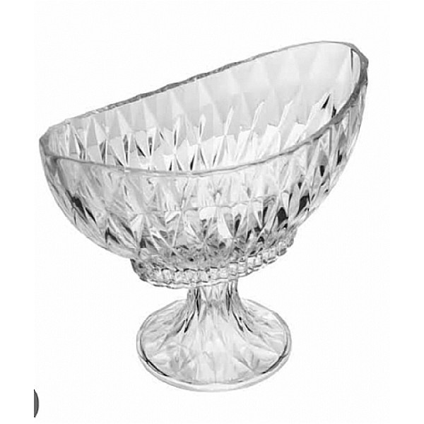 Fruteira / Centro de Mesa Cristal Com Pe Diamond Oval Canoa ---- 28 Cm X 15 Cm X 22,5 Cm Alt